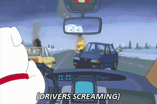 (DRIVERS SCREAMING)