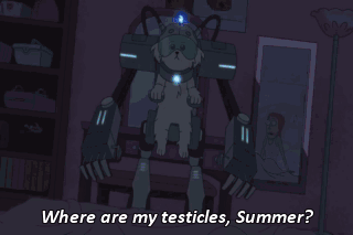 Where are my testicles, Summer? Where are my testicles, Summer? They were removed. Where have they gone? Oh, wow. That's an intense line of questioning, Snuffles.