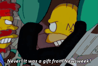 Never! It was a gift from Newsweek! Homer! Give me back my wife! Okay. Okay. You win.