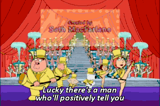 Lucky there's a man who'll positively tell you all the things that make us laugh 'n' cry He's a family guy Peter, this is ridiculous.