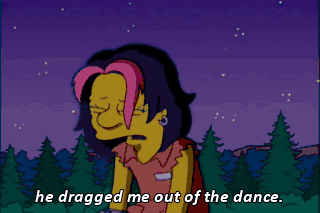 he dragged me out of the dance. I didn't want to go, but he was too strong! But you got 20 pounds on me. And then, he said I was fat! Oh, I am screwed. You bet you are.