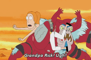 Grandpa Rick! Ugh! Help! Help! Aah! Aah! Aaaaaaaaaaaaaaaaah! Grandpa Rick! Still think it's a good idea to go through holes without a wiener? I want to go home. Yeah, no duh. Ugh!