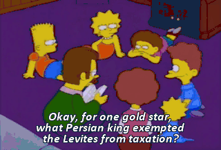 Okay, for one gold star, what Persian king exempted the Levites from taxation? Artaxerxes! Righty-o!
