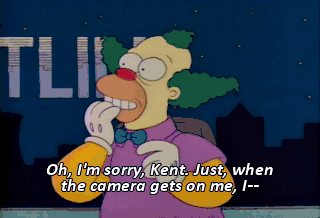 Oh, I'm sorry, Kent. Just, when the camera gets on me, I-- Hey-Hey ! Krusty ! Oh. Sorry.
