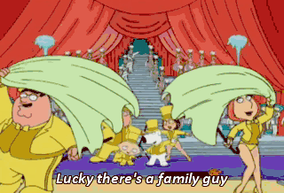 Lucky there's a family guy Lucky there's a man who positively can do All the things that make us Laugh and cry He's a family guy