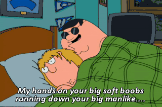 My hands on your big soft boobs running down your big manlike.... Holy crap, it's Chris.