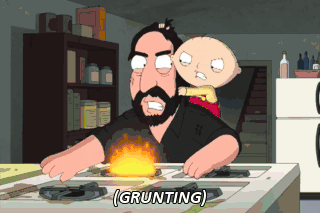 (GRUNTING) (GRUNTING) What the hell are you doing? We haven't eaten since the plane. I'm starving.