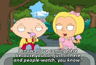 I know. I love coming here because you can just sit here and people-watch, you know?