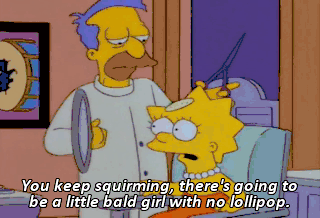 You keep squirming, there's going to be a little bald girl with no lollipop.