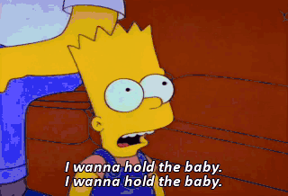 I wanna hold the baby. I wanna hold the baby. I'm sorry, Bart. You're too little. Here, Bart, you can hold my beer. Homer! What? Good night, honey. Hello, Lisa.