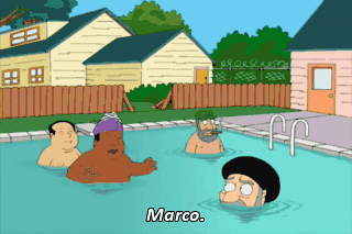 Marco. Polo. Marco. Polo. Fish out of water!