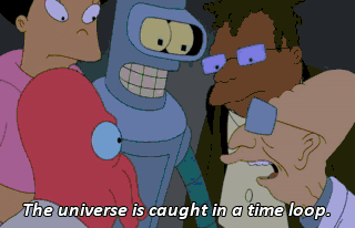 The universe is caught in a time loop. Then let's go out and stop them. Are you mad? Because that would make two of us. (SIGHS) You're right. We'd never get anywhere.