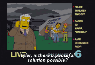 Tyler, is there a peaceful solution possible? (TYLER COOING) (BEEPING) (GASPING) All right, that's it. Show's over! Five, six, so long, hicks!