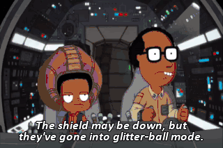 (DISCO VERSION OF STAR WARS THEME PLAYING)