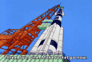 Three, two, one. Make rocket go now.