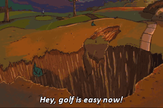 Hey, golf is easy now! Aah! Golf is hard again! Golf is hard again!