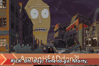 RICK: Oh, boy, Time to go, Marty, Uh, where? The Pentagon. I mean, not the Pentagon. The lame one here on Earth.