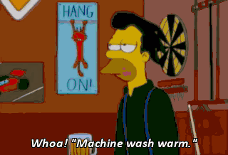 Whoa! "Machine wash warm." "Tumble dry." Ooh, la, la. Wait up, guys! I gotta empty my grass bag! "Hell's Satans," huh?