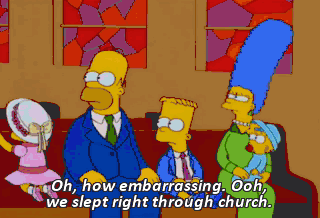 Oh, how embarrassing. Ooh, we slept right through church. Eh, it's not the end of the world.