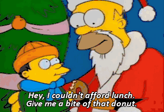 Hey, I couldn't afford lunch. Give me a bite of that donut.