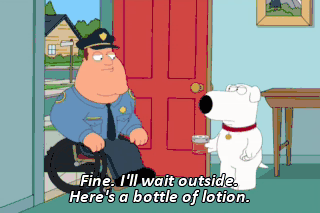 Fine. I'll wait outside. Here's a bottle of lotion.
