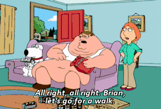 All right, all right. Brian, let's go for a walk. Meg, sweetheart what's wrong? My life. That's what's wrong.