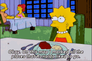Okay. On this map I marked all the places that Ronaldo liked to go. If we split up, we should be able to search them all. Hi-yah! We'll do our best. Now let's get goin'. - Ooh! - Check, please. Sí-í-í?