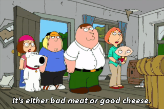 It's either bad meat or good cheese. There's a penny underneath that couch.
