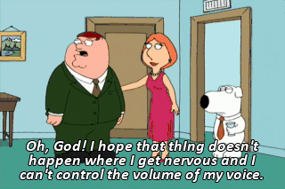 Oh, God! I hope that thIng doesn't happen where I get nervous and I can't control the volume of my voice.