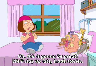 Oh, this is gonna be great! We'll stay up late, trade stories. Let's watch the video of my ballet recital. Here it is! (EXCLAIMING)