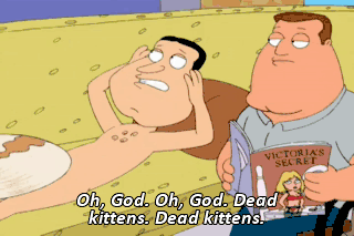 Oh, God. Oh, God. Dead kittens. Dead kittens. Old nuns. Really old nuns. Renee Zellweger. Oh, there we go.
