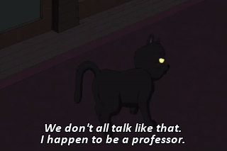 We don't all talk like that. I happen to be a professor. Our apologies, sir. I should imagine so. Now if you'll excuse me, I have papers to correct.