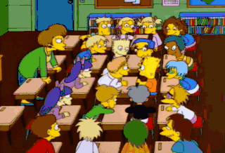 Um, I never thought I'd say this, but shouldn't we be learning something? Say the line, Bart. I didn't do it. Yea! Come on, Lisa. Say somethin' funny.