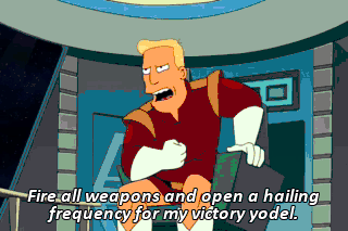 Fire all weapons and open a hailing frequency for my victory yodel.