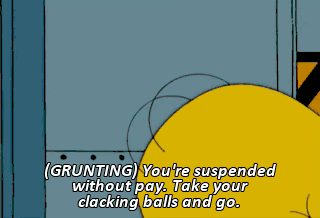 (GRUNTING) You're suspended without pay. Take your clacking balls and go. And on your way out, remove all the fillings you got under our dental plan. You know what, Mr. Burns? I'm never coming back!