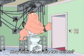 How come there are two toilets? The other one's for blood. (WHIMPERING) Cleveland's old house. Perfect! Damn, no toilet paper. - Hey, Joe, can I borrow this? - JOE: Sure.