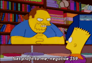Net profit to me, negative $59. Oh, oh, please take my $59. I don't want it. It's yours.