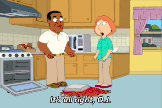 It's all right, O.J. Let me get something to clean that up. (SCREAMING) Oh, my God! Oh, my God! Brian, what's the matter? (SIGHS) You're alive. Yeah. We just had a little pasta spill. Oh, thank God.