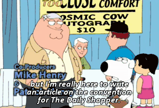but I'm really here to write an article on the convention for The Daily Shopper.