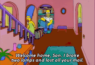 Welcome home, Son. I broke two lamps and lost all your mail.