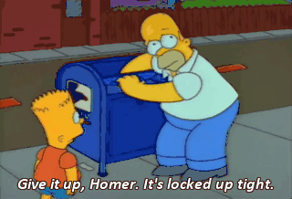 - Give it up, Homer. It's locked up tight. - Locked, eh ? Well, I just might have a little surprise up my sleeve...