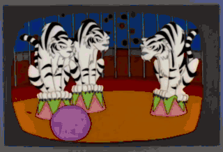 three Siberian tigers. Simba, on the ball. Aaah! Not the face! Ah, they'll be chewing on him for a while.