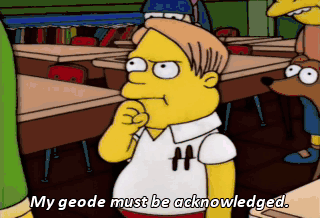 My geode must be acknowledged. Oh, brother. All right. Back to show-and-tell.
