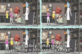 Quit yelling. What the fuck yourtime is all ripped up to hell!