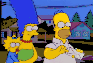 "Wel-diddly-elcome, Simpsons." Oh, geez! He actually wrote "diddly." That was thoughtful. "I left a few helpful notes around the house." Ah, Come-- Gee! "Put food in me." I'll take that.