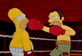 Okay, Homer, he's tired! He's tired! Now's your chance! Nudge him! Nudge him!