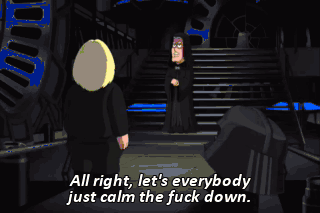 All right, let's everybody just calm the fuck down. Move! Run! The shield is down. Commence attack on the Death Star's main reactor. The shield may be down, but they've gone into glitter-ball mode.
