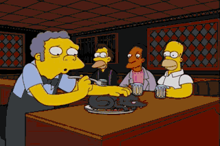 There we go. Mmm! Long live the hero cat of Springfield! Yay! I make you lasagna. You eat it up like-a the cat in the funny papers... who's-a not so funny.