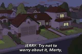 JERRY: Try not to worry about it, Marty, You're a good kid, and there's not a premium on that right now, but you'll be getting girls sometime after Brad's out of shape. You're missing the point, Dad.