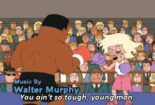You ain't so tough, young man. That all you got, you son ofa bitch? You're going down, young man. You're going down! I can't believe this. She keeps getting up. I'm so exhausted. (CROWD GASPING)
